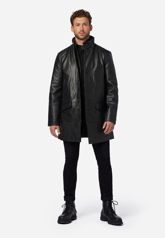 Whether you are looking for a classic trench coat, an elegant long blazer, a rustic parka or a classy frock coat - our collection covers every need. As the "big brother" of the leather jacket, the men's leather coat is a visual highlight in every outfit, not only due to its length, but also due to its unique appearance. A well-stocked men's wardrobe should therefore not be without a leather coat for men.