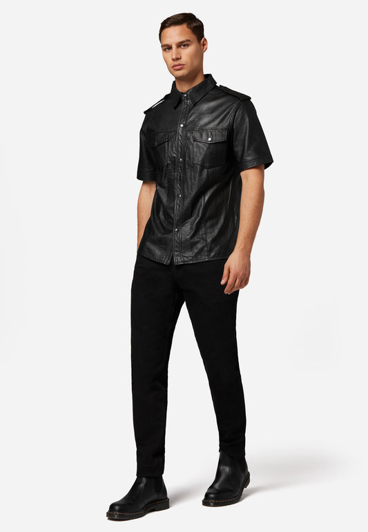 Our short-sleeved leather shirts are the ideal choice for an effortless yet elegant look. Whether in deep black, warm cognac or refreshing olive, these shirts add an extra dose of style to your look. Perfect for sunny days and ideal for combining with jeans or chinos.