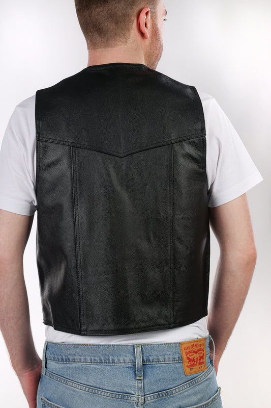 In our online shop you will find affordable leather vests for men in different types of leather, colors and cuts, which are also available in small and large sizes. Most models are available from S to 3XL, some even from XS to 5XL.