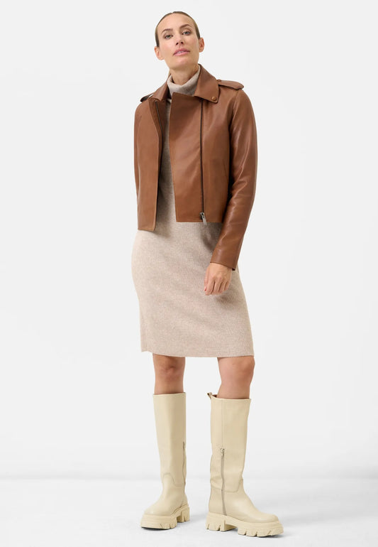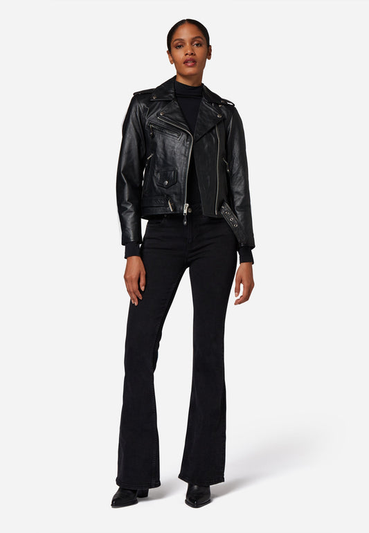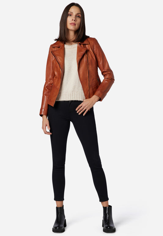 If you are unsure about choosing your first women's leather jacket , we recommend going for the classic - the women's leather jacket made of black smooth leather! The black leather jacket is an all-rounder that suits every style. Whether it's a straight-cut model or a biker cut with a slanted zipper - a simple black leather jacket can be combined in many different ways and gives every outfit an extra dose of coolness.