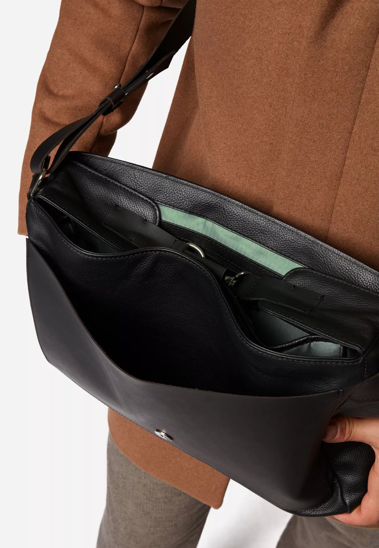 Whether you wear it to work, to business meetings or in your free time, the men's leather shoulder bag Phil always cuts a fine figure.