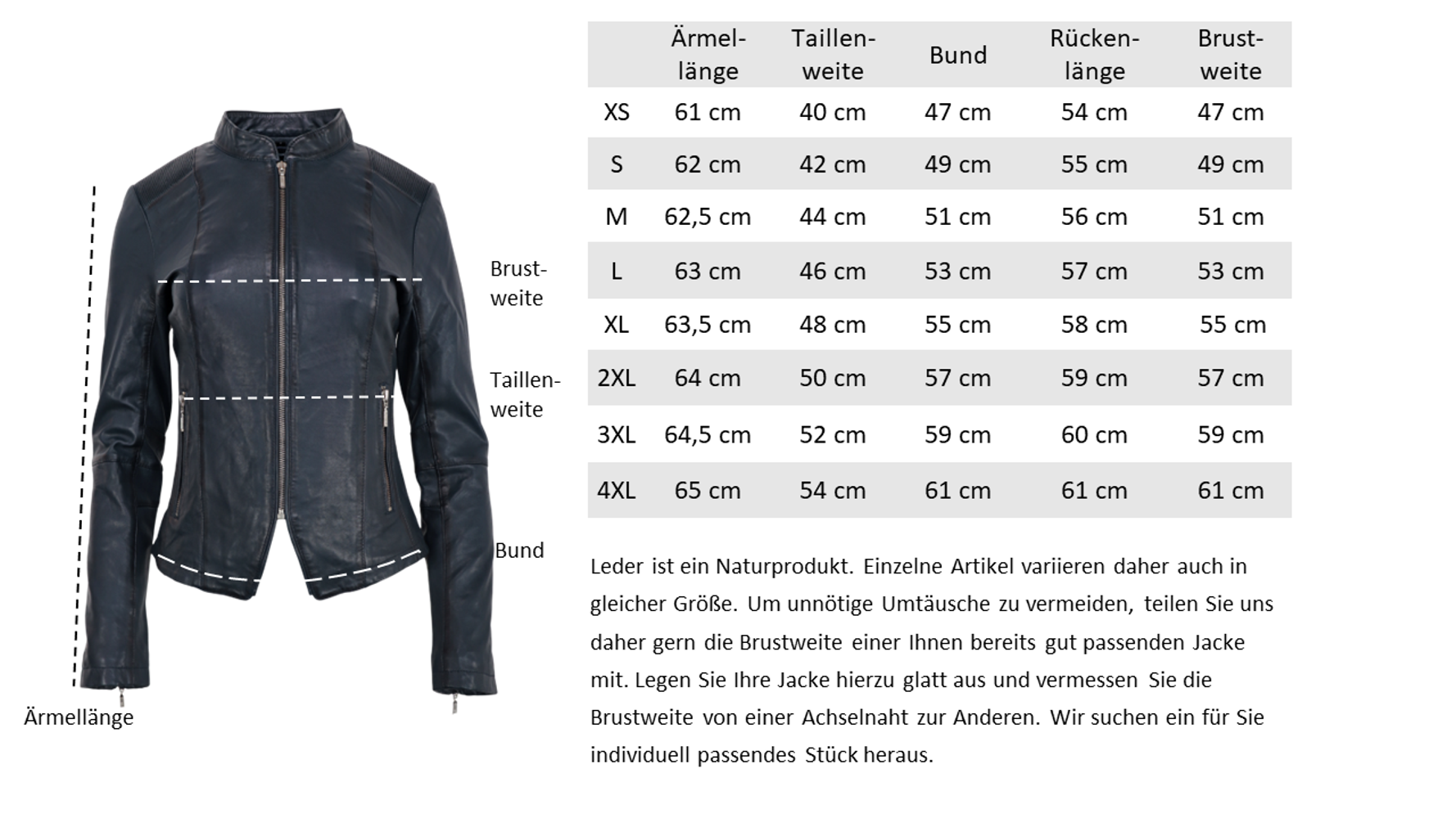 Sehr weiches Leder, sehr angenehm. Passform wie erwartet, übliche Konfektionsgröße - ich habe S gekauft bei 170cm/56kg.