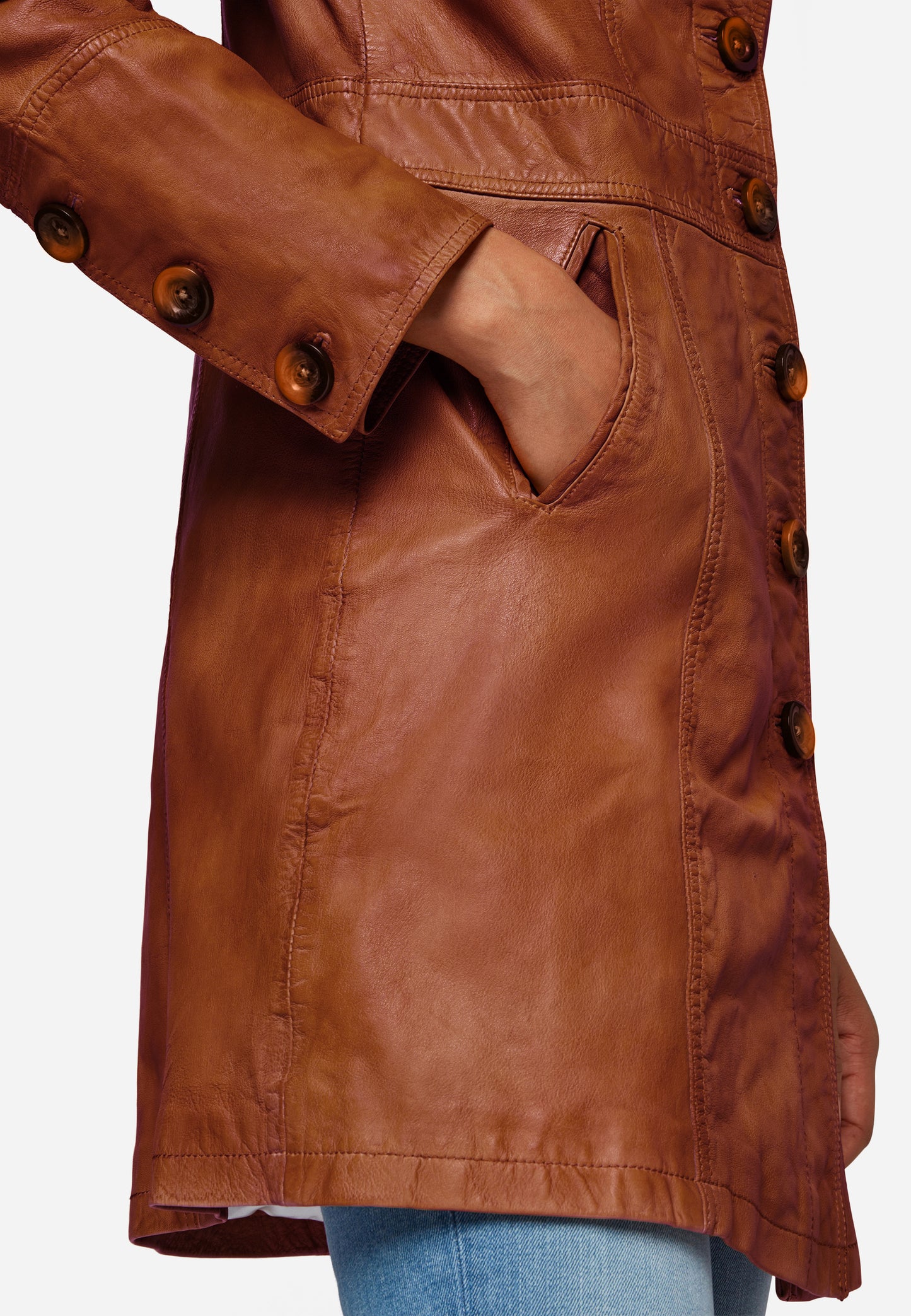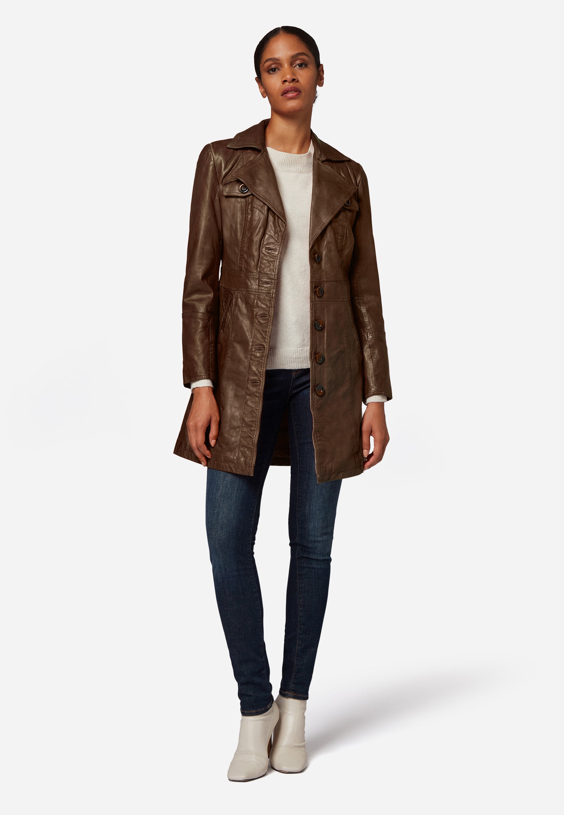 Habe diesen Mantel als Geburtstagsgeschenk für meine Frau gekauft und sie ist begeistert vom Stil und der tollen Lederqualität. Klare Kaufempfehlung von Ihrer Seite!