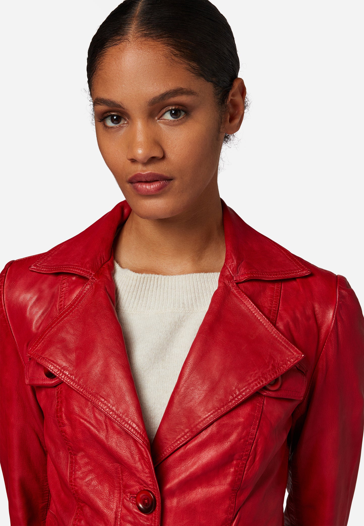 If you are looking for a fashionable transitional coat for spring and autumn, the Lucy model is just right for you. Whether casually thrown over your shoulders in a café on a spring morning or worn with a knitted sweater and scarf on a leisurely autumn walk - the lightweight short leather coat Lucy can be styled in many different ways and looks good in every season.
